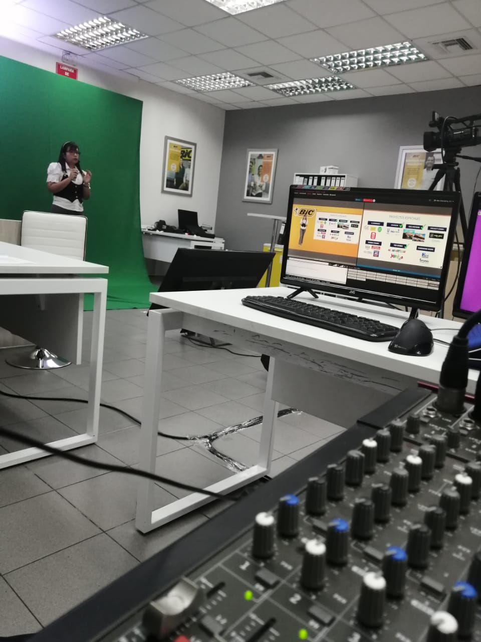 Nuestro equipo se encargó de la producción insitu del evento con nuestra tecnología chroma key. Con esto podemos introducir un video de fondo y hacer sus charlas más interactivas y dinámicas. También nos encargamos de la transmisión/streaming del evento a varios países.