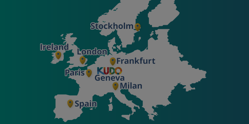Ahora también, KUDO, la plataforma líder para reuniones en línea con interpretación, cuenta con servidores en Frankfurt, Milán, Londres, París, Estocolmo e Irlanda, que proporcionan tecnología y servicios a los clientes europeos.