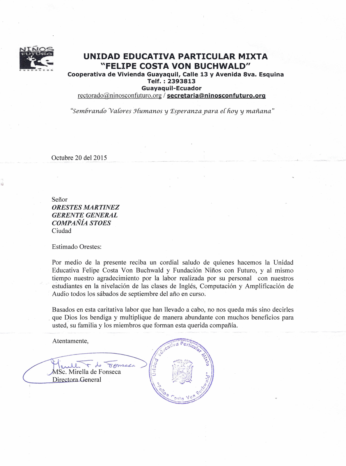 Deseamos STOES SA todo lo mejor en sus proyectos futuros.